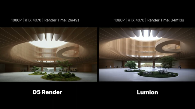 Như bạn thấy, D5 chỉ mất 1/10 thời gian so với Lumion để render đoạn hoạt hình 6 giây này, và đó là khi Lumion chỉ sử dụng chất lượng 2 sao.