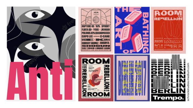 Xu hướng này thường bao gồm các màu sắc xung đột, bố cục bất thường, văn bản chồng chéo, kiểu chữ bị biến dạng, hình ảnh chất lượng thấp hoặc bị vỡ hạt, và khoảng cách không đều. Thiết kế phản truyền thống không phải là thiết kế cẩu thả—đó là một lựa chọn sáng tạo có chủ đích để nổi bật và thể hiện sự nổi loạn, sự trung thực hoặc cá tính riêng.
